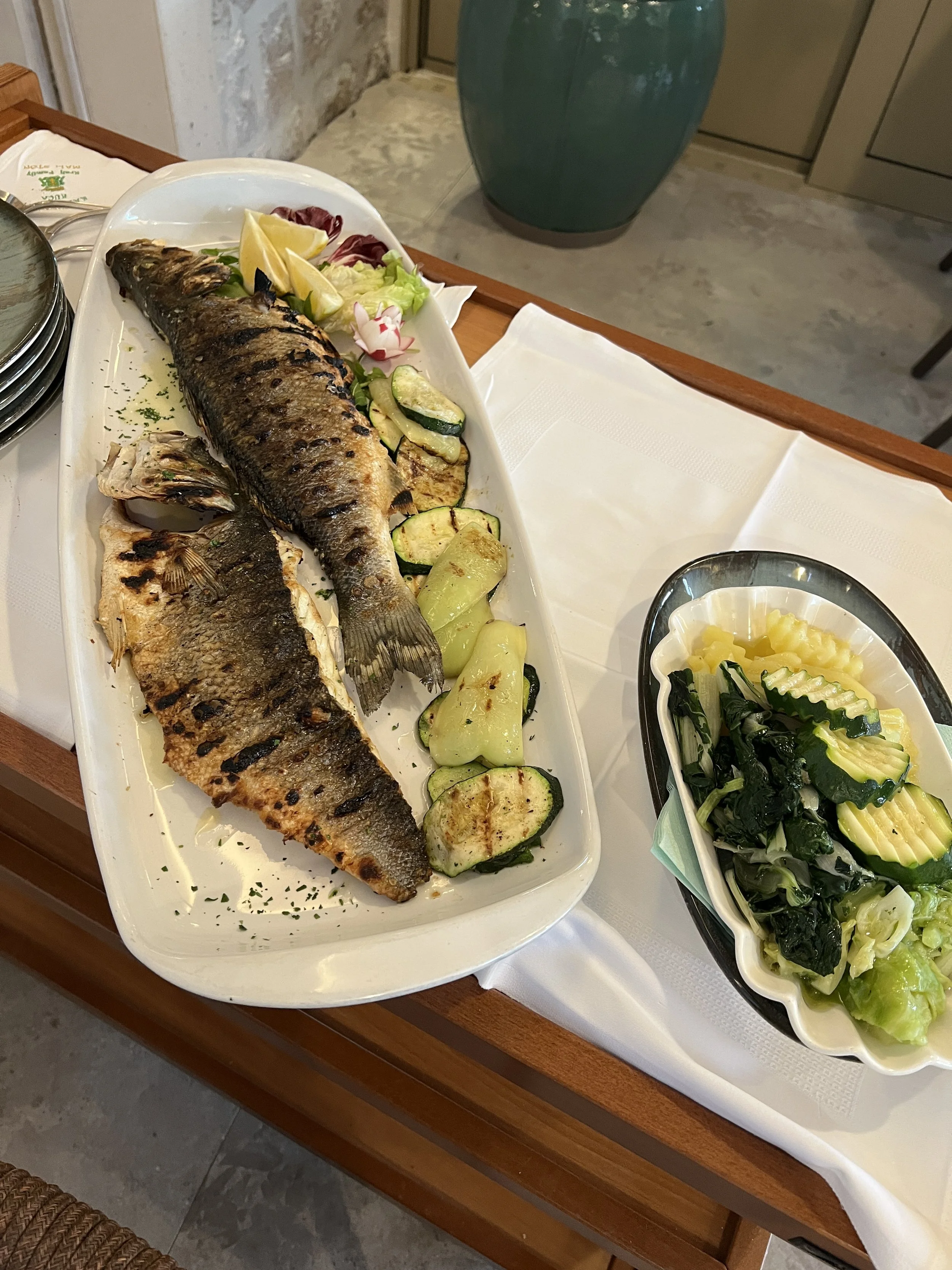 We had a 1.2g sea bass as our dinner which came with potatoes and veggies! It was delicious!!!