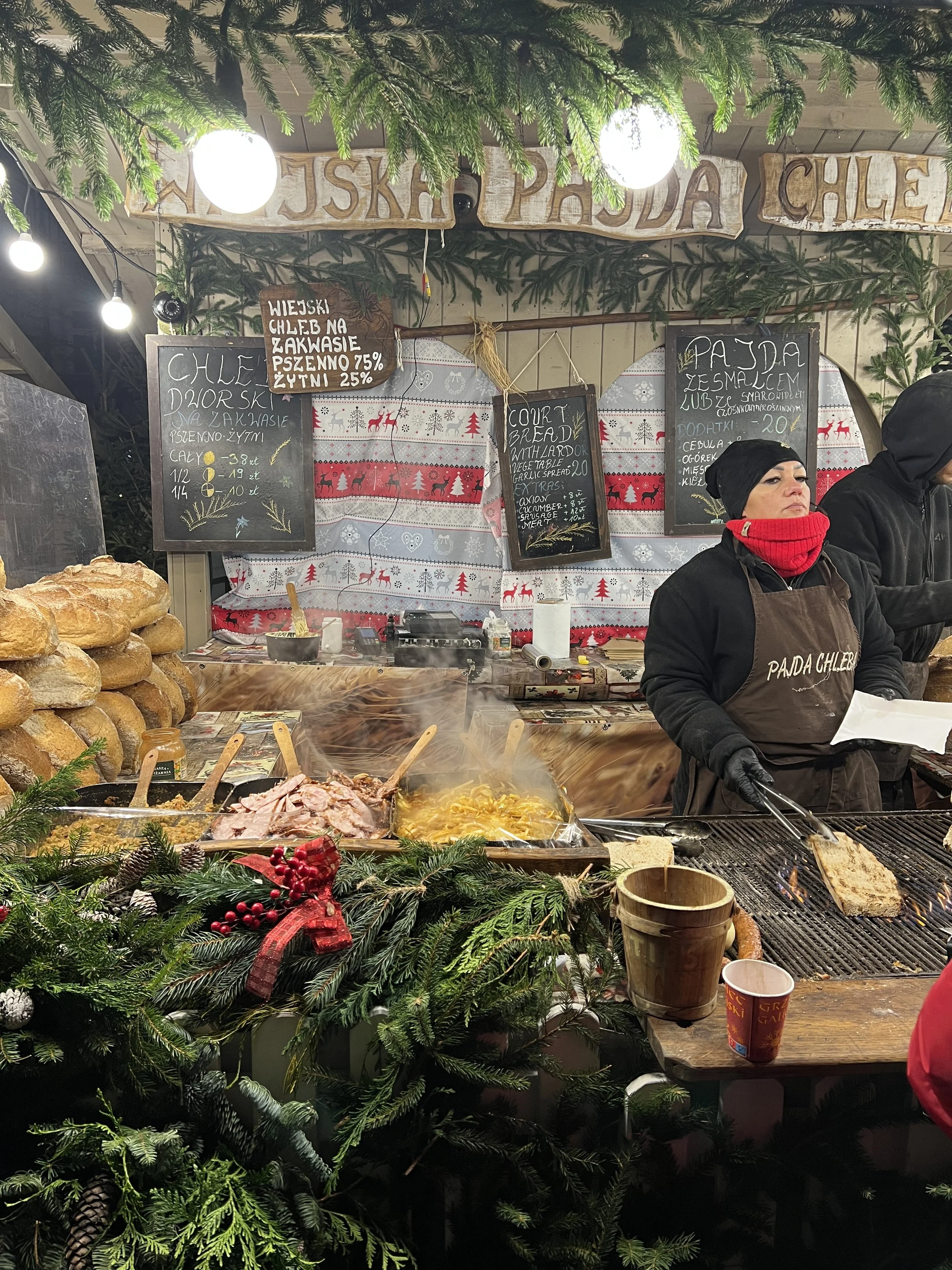 The stalls were filled with pierogis, smoked sausages, stuffed cabbage, grilled cheeses, and grilled bread topped with garlic butter, onions, and kielbasa. It smelled wonderful. Johnny decided he wanted McDonald’s….