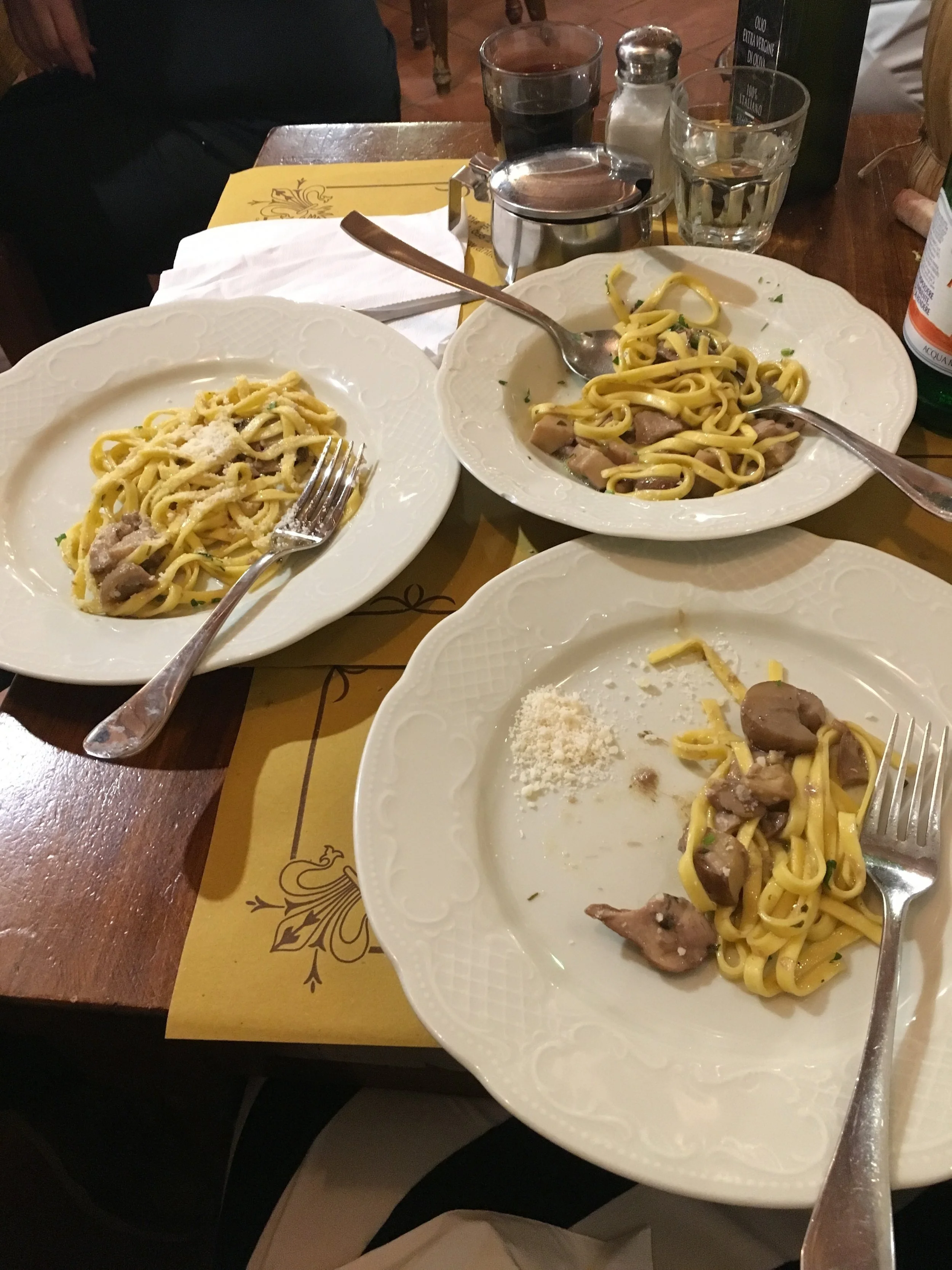 For our pasta course we ordered taglierini di pasta Fresca ai funghi porcini. I don't normally like pasta but Italy has been pretty delicious. Adam doesn't like the mushrooms so I got to eat all of them. I was already basically full when they took away the pasta and showed us our raw one kilogram of steak before sending it to the kitchen for approval.