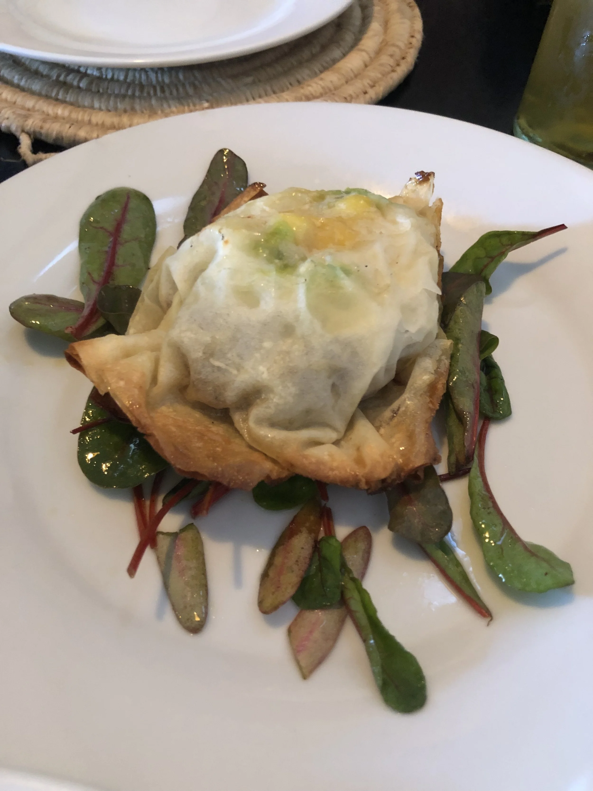 Our strolling through the streets brought us to our lunch destination, a restaurant named Nomad which I had read about. They are known for pretty views however they were also packed so we ended up sitting inside. We had some mint iced tea which was nice and refreshing and shared two appetizers since we had just sort of eaten breakfast. The cauliflower you see there was roasted and topped with turmeric butter and it was done over a bed of couscous which must have had a lot of butter but also basil and spinach and cilantro. It was very fresh and buttery and herby. The Tunisian brik is the other dish pictured. This was a pastry with spices pulled beef and an over easy egg on the inside. We were in love with this appetizer but just the food in general was so modern and yummy. The portions were perfect for a light lunch break before more exploring.