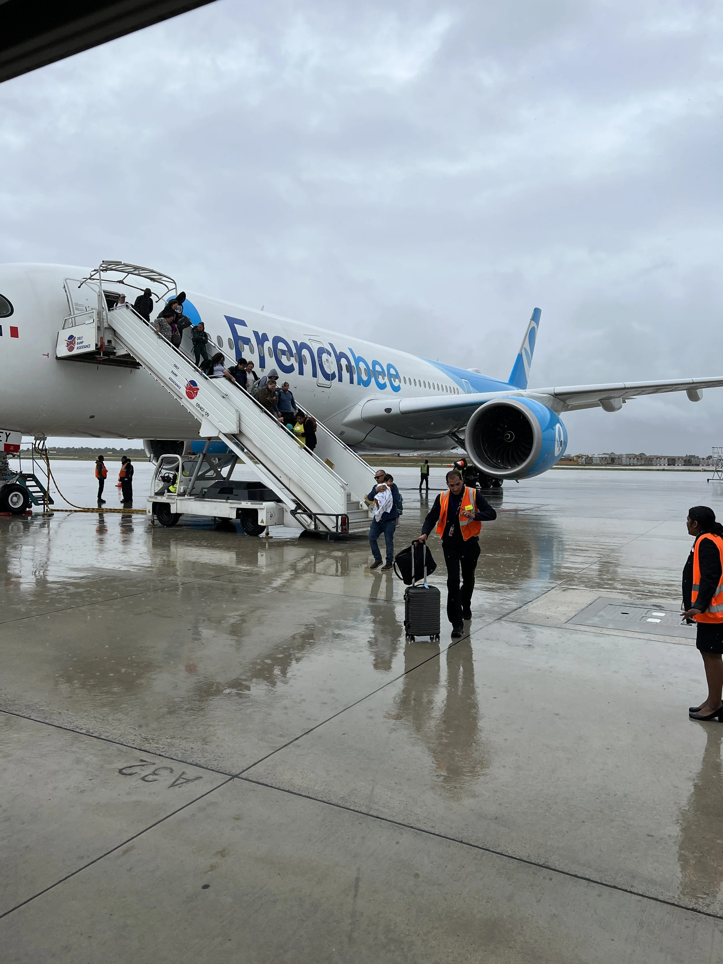 We board the bee. I booked a window seat and Rebecca booked the aisle. We had hoped the seat between us would be open but there was a young woman sitting there with her dog. I politely asked if she would mind switching to the aisle so we could be next to each other…she agreed but then Rebecca is like “where are you going? I want the aisle, I don’t need to be next to my friend” lol so we flew in our extra small seats with her in between.
