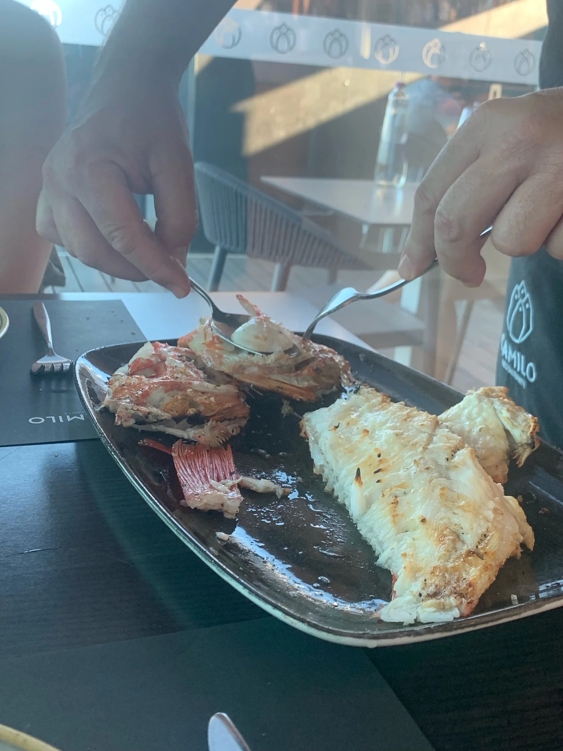 We were able to select the fresh fish we wanted except that I don’t know fish at all so we just asked for a fish for two that was light. It was really amazing. They deboned the fish for us, we topped it with lemon and olive oil. Paired with a crisp white wine. Yum yum yum. Seafood by the sea.