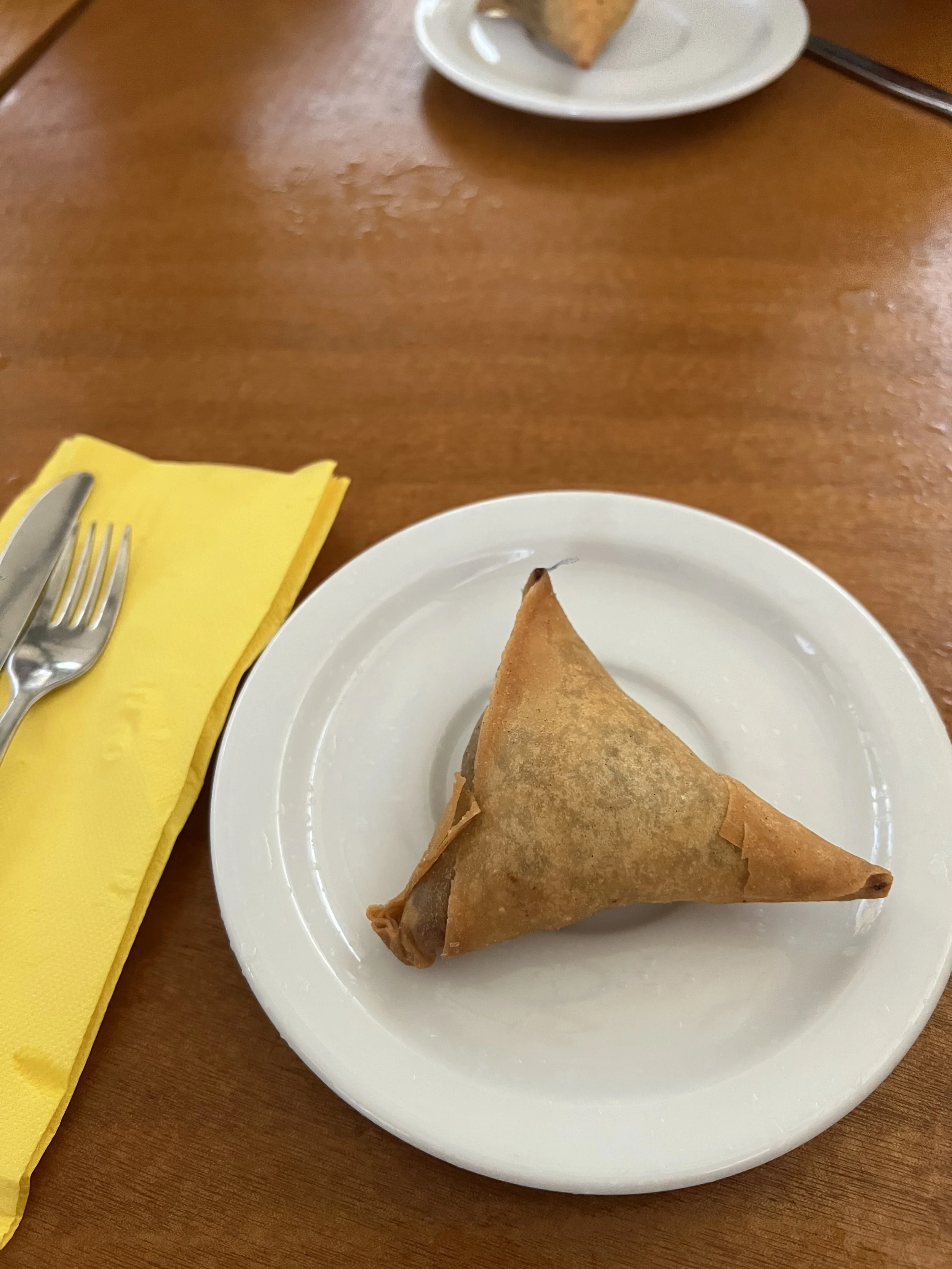 We had a beef and vegetarian samosa each with a glass of wine. Basically empanadas with crunchier outsides. The vegetarian one was mostly cheese and corn and squash.