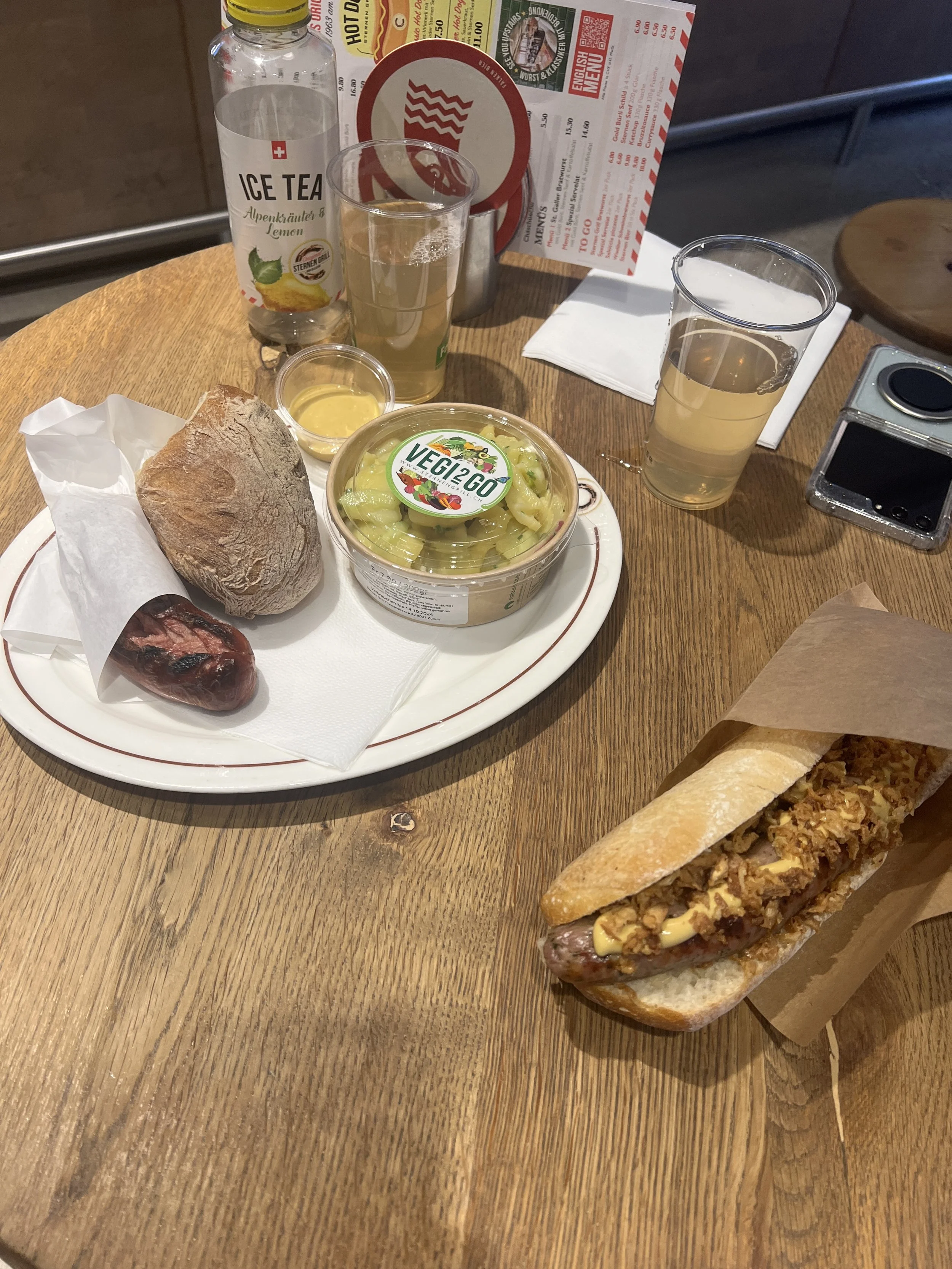 The 8am arrival to Europe after not so much sleep was a bit rough. We had to drop the bags off at the hotel and couldn’t check in until 2. But we had a plan! Lunch, walking tour, nap. Except that we were at the hotel by 9am and the walking tour wasn’t until noon. While checking in, I discovered that the charging wire that I brought was broken so my phone was near death. Side quest: expensive Swiss charging wire.